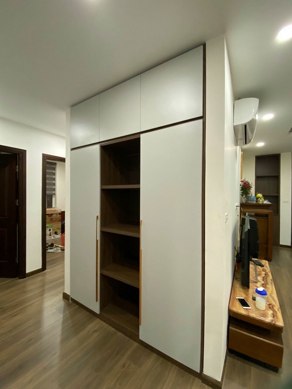 - Tủ kết hợp kệ trang trí: tăng tính tiện ích
